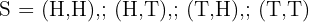 The set of all possible outcomes is called the sample space. For example, if you toss two coins simultaneously, the sample space is: