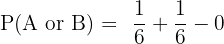 Substituting the values of probability in the compound probability formula will give us the probability of getting 3 or 6: