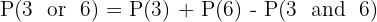 These two events are mutually exclusive — you cannot roll both a 3 and a 6 on a single die. So: