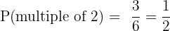 The multiples of 2 on a die are 2, 4, and 6 — that is, 3 favourable outcomes out of 6.