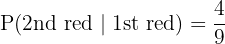 After removing one red marble, there are 4 red marbles left out of 9 total: