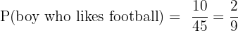 In a class, there are 30 girls and 15 boys. Of the 30 girls, 20 like football and 10 like badminton. Of the 15 boys, 10 like football and 5 like badminton. A student is selected at random. Find the probability that the student is: