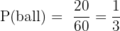 A pool contains 20 balls and 40 blocks. Of the 20 balls, 10 are red and 10 are blue. Of the 40 blocks, 15 are green, 10 are red, and 15 are blue. An item is picked at random. Find the probability that it is: