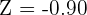 Now, we will use the Z-table to find the probability P(Z < -0.90). To do so, we will see where the number -0.9 in the row overlaps with column 0.00. From the table, we got the value 0.1841.