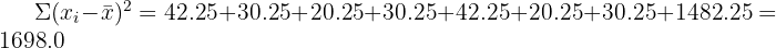 | 30 – 40 | 5 | 35 | 175 | −29.7 | 884.5 | 4,422.7 |
