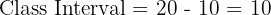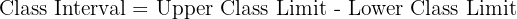 Class interval width = whatever size you choose (e.g., 5, 10, etc.).