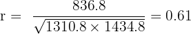 For two variables X and Y, the Pearson correlation coefficient is given by: