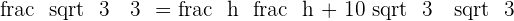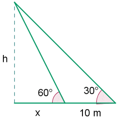 Calculate the height of a tree, knowing that from a point on the ground the top of the tree can be seen at an angle of and from 10 m closer the top can be seen at an angle of