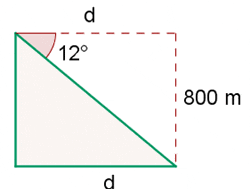 An airship is flying at an altitude of when it spots a village in the distance with a depression angle of