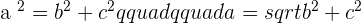 angle will be the hypotenuse which is denoted by a. Since the square of the hypotenuse is equal to the sum of squares of the leg that means the hypotenuse is on the other side of the equation and remaining will be on the next to that equation like this: