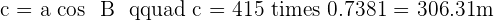 The angle between c and b is