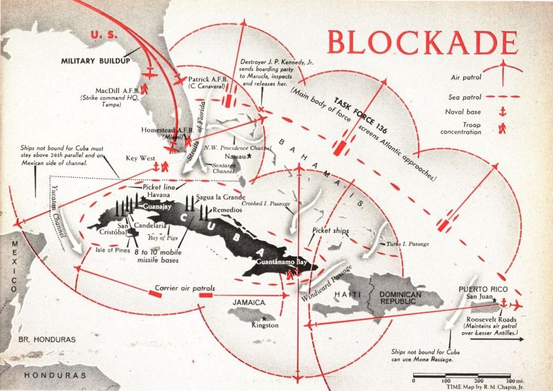 Soon after came the Cuban Missile Crisis in October 1962 - arguably, the most dangerous moment of the Cold War. Having discovered Soviet nuclear missiles were secretly being installed in Cuba, a mere 90 miles away from the coast of Florida, Kennedy's administration quickly imposed a naval blockade on the country and demanded that the missiles be removed.